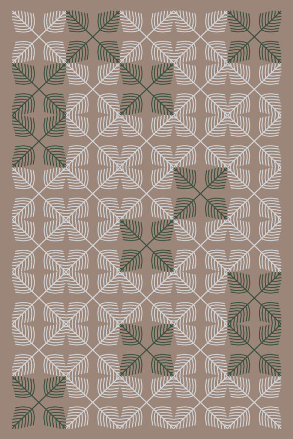 - Brown background, pattern in white and dark olive green.